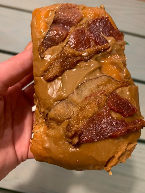 I first tried the classic Voodoo Doll. This was actually my favorite! I love a yeasty donut and the raspberry jam in it was perfectly tart. The pretzel stick stake is like, a cute idea, and it’s just for decoration, so I won’t include it in the flavor profile of the donut lol. And without including it, I’d call this 10/10!