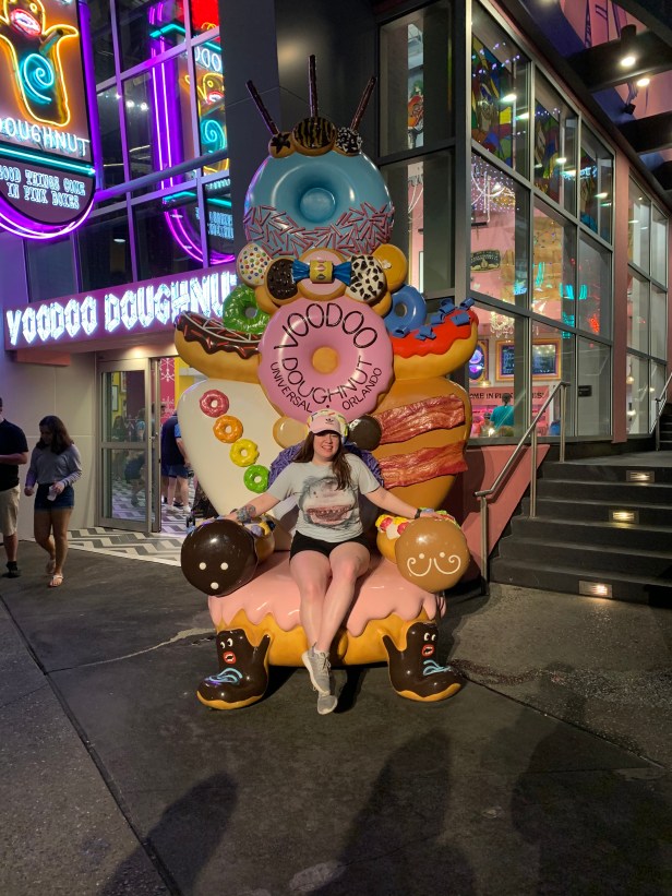 CityWalk at Universal Orlando hosts one of the nine locations of well-known donut chain Voodoo Doughnut (another is at CityWalk Hollywood). I am very into donuts, and they seem to be having a moment right now- if you need proof of this, go to Target and check out donuts on shirts, socks, pillows, and other stuff, as well as food that is not donuts being made to look like donuts (such a cookies and cereals).