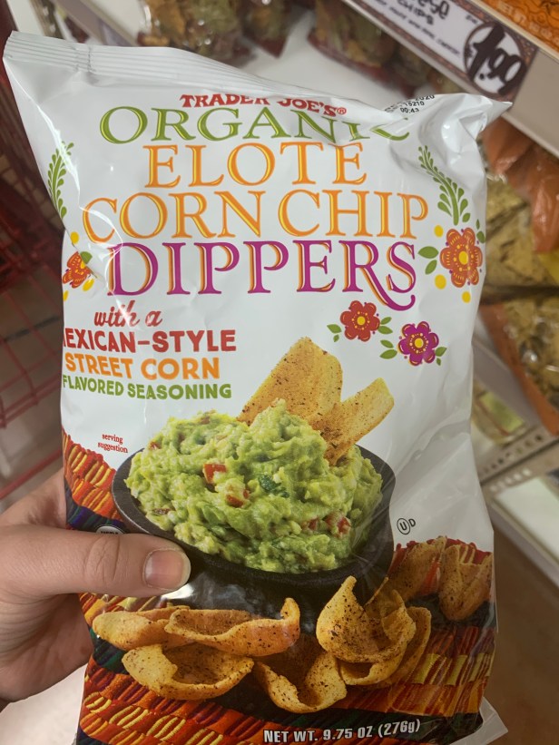 THEEEESE Elote Corn Chip Dippers are essentially fritos scoops seasoned like Mexican street corn. It’s a perfect summer flavor. They’re spicy! But sooo delicious with guacamole. I love these.