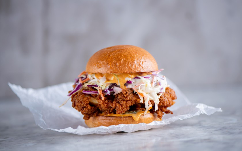 Let’s start with the best chicken sandwich I’ve ever had. When we went to the L.A. area last March my boyfriend’s sister recommended a restaurant called Umami Burger, which we ate at twice over the course of our trip. Both times I got the Sam’s Crispy Chicken Sandwich, featuring the obvious crispy chicken, a slaw, some pickles, and their signature ooh-mami sauce. Sounds pretty simple, like your average crispy chicken sandwich, but it is for real the best I’ve had. Maybe it’s the sauce! Please join me in drooling over the photo below.