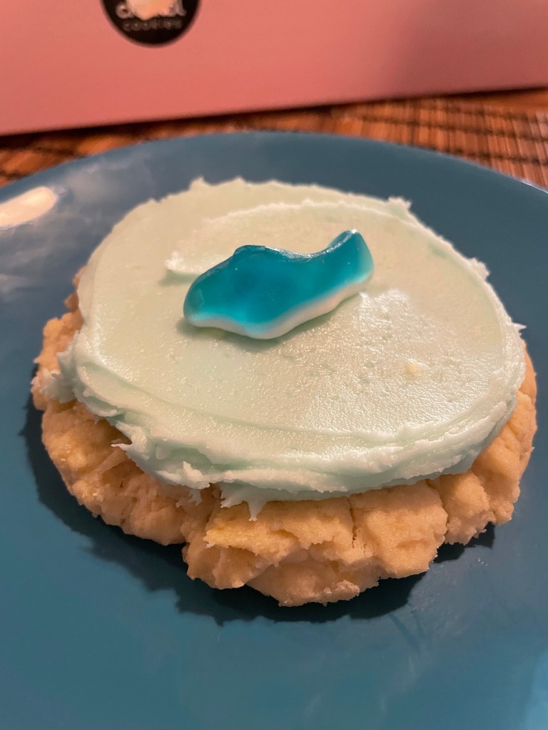 The shark cookie was just a sugar cookie, but supposedly made with vanilla flavor instead of almond flavor like the pink sugar cookie that they carry pretty consistently most weeks. I feel like this was still almond haha. No complaints at all though, it’s an INCREDIBLE almond sugar cookie. So good.